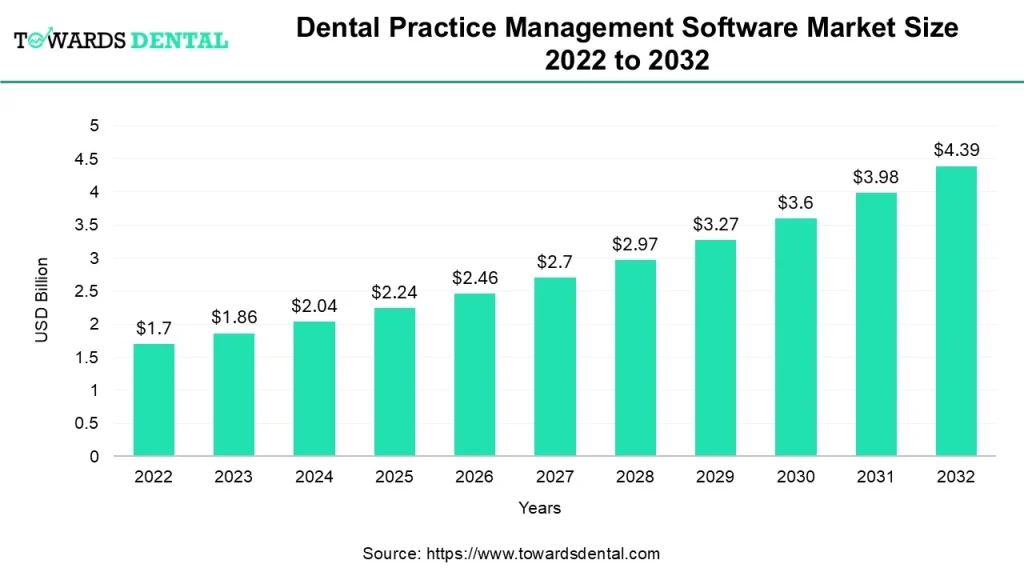 As highlighted in a recent Precedence Research report, the global dental practice management software market size was estimated at US$ 1.7 billion in 2022 and is expected to surpass around US$ 4.39 billion by 2032, growing at a CAGR of 10% during the forecast period from 2023 to 2032.